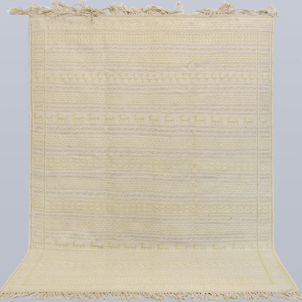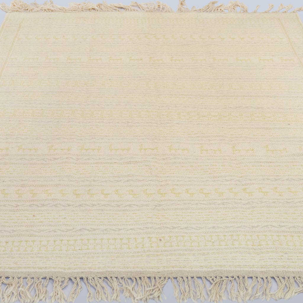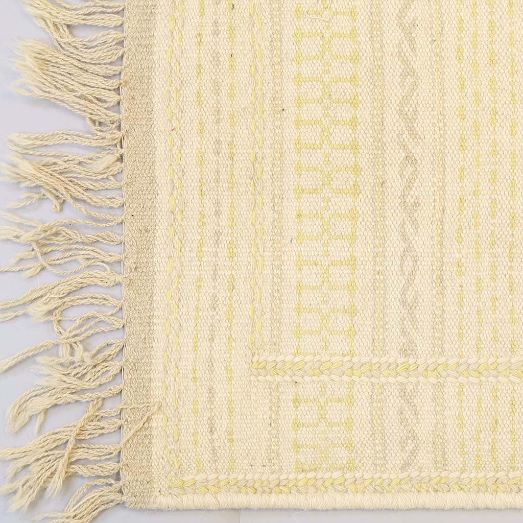 Adrina i en lugn och varm färgkombination som lyfter ett rum utan att ta över helheten. Gula & gråa inslag på en neutral botten som känns vilde för ögat. Vår modell Adrina tar inspiration från Nomad Kelim med en skandinavisk twist, handvävd i 100% ull.