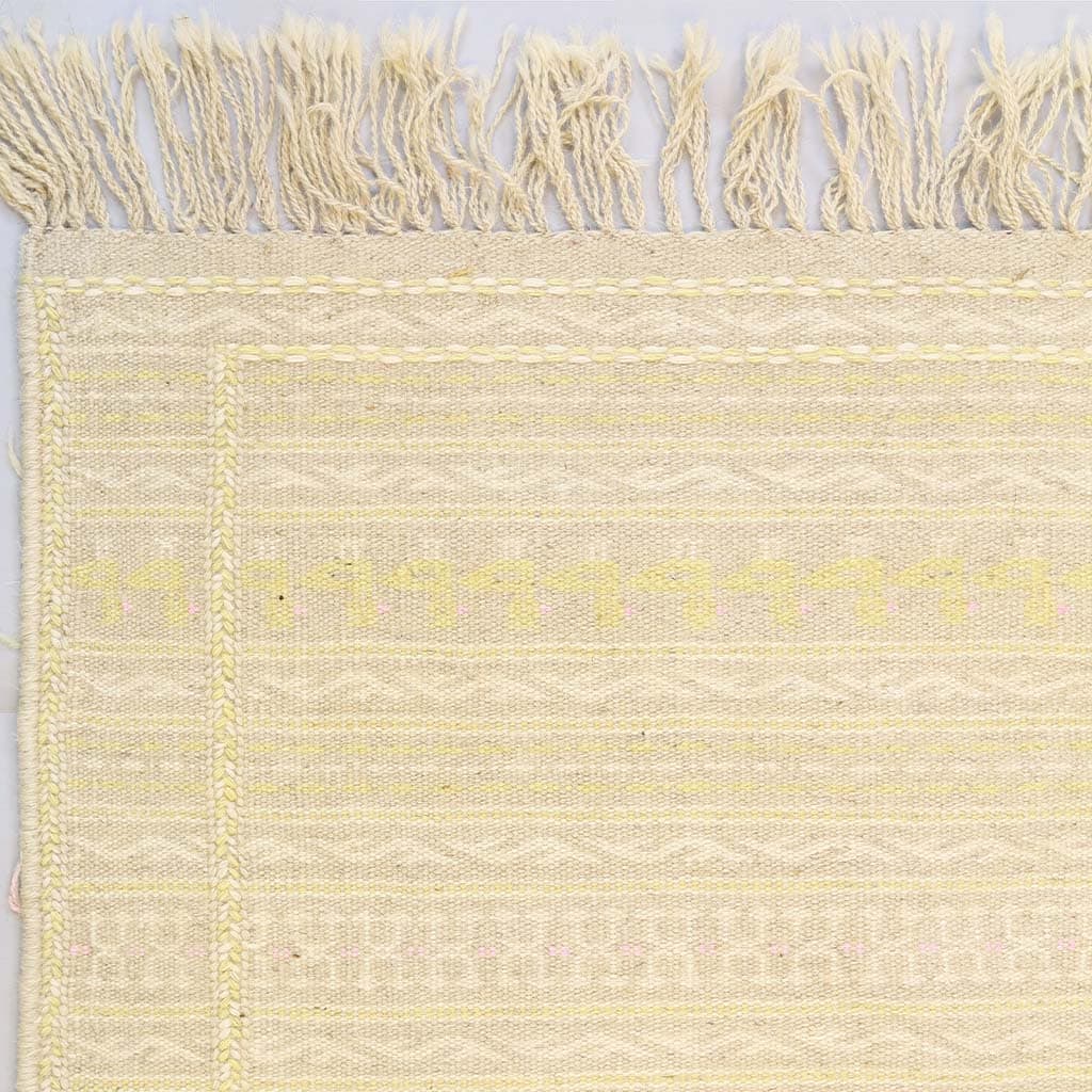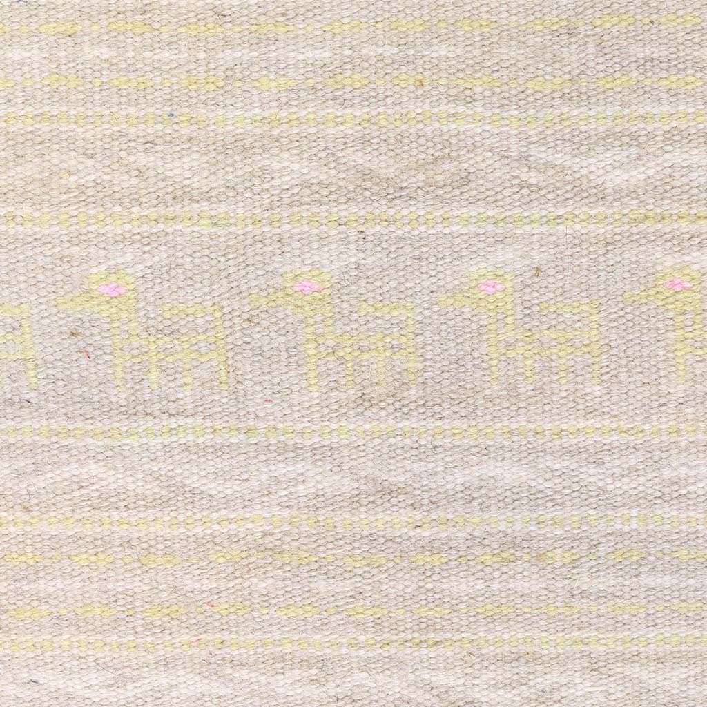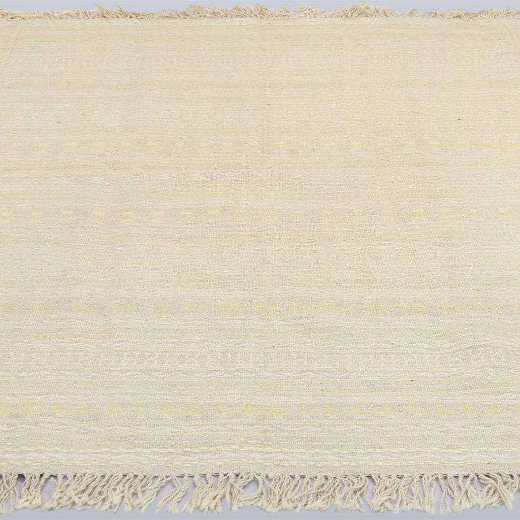 Adrina i en lugn färgkombination som inte tar över rummet. Fina små rosa detaljer av silkesinslag. Inspiration från Nomad Kelim med en skandinavisk twist, handvävd i 100% ull.
